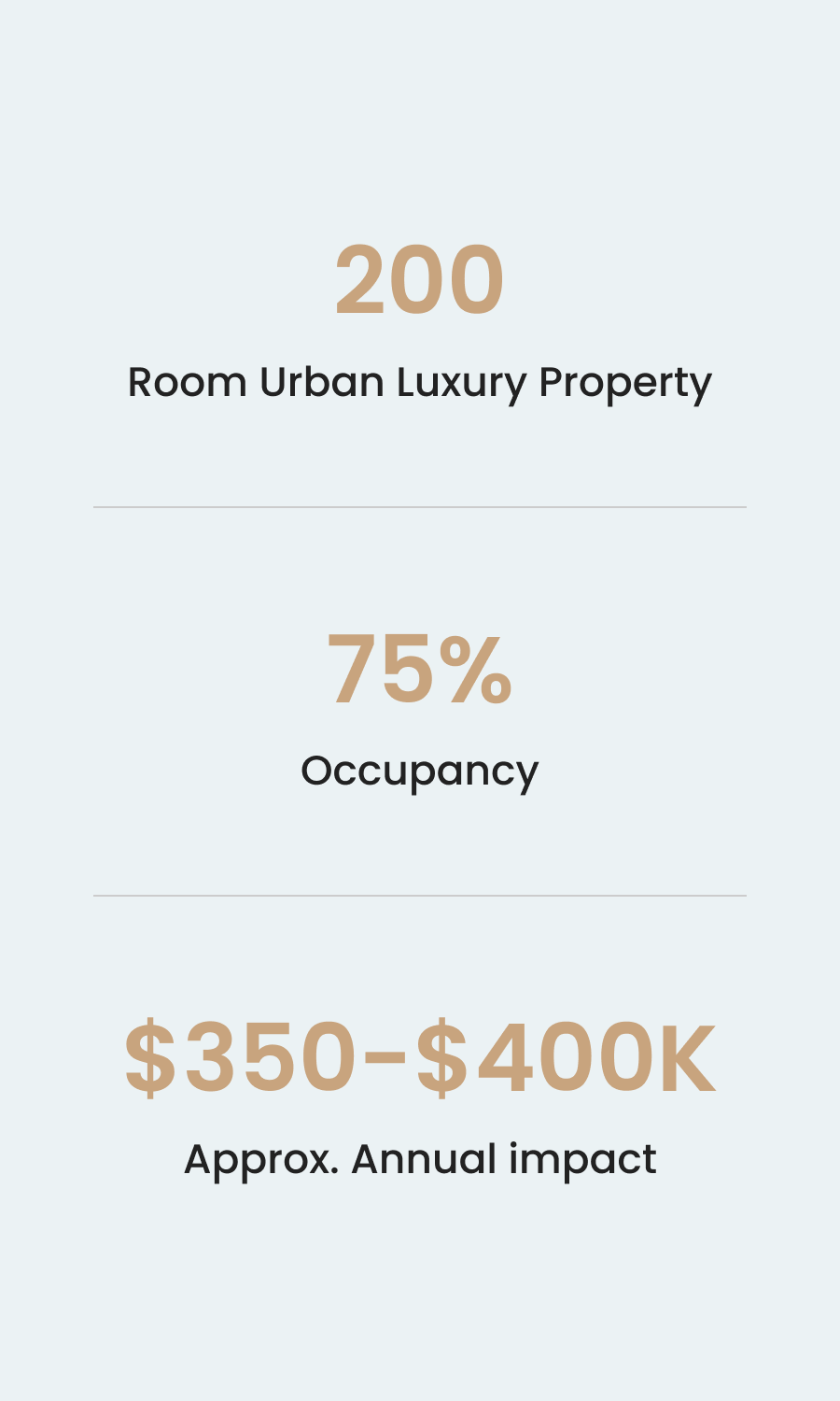 These figures reflect incremental upside layered onto existing performance, not dependent on ADR increases or repositioning strategy.
